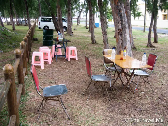 游完水後,粗眉仔和公主(全程只在岸上的沙灘椅「擺橫」,未曾濕身)都覺得有點肚餓。下午三時多,酒店餐廳正在休息,兩人只得到外邊找吃的。由於是淡季,附近的商店全關了門,好容易才找到一家只由一個印度女人主理大排檔,立即向她點了一碟雞肉炒麵,連礦泉水都不過係100Rupee,即只20元港紙左右,非常抵食。