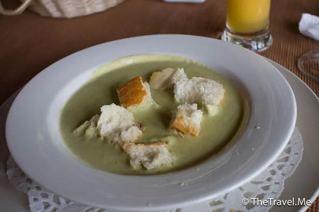 午餐有雞或魚揀,粗眉仔揀魚。餐湯是法式露筍湯,非常好味。熱騰騰的超厚魚扒隨即送上,多汁鮮甜,想不到在郊外亦可享此美饌。