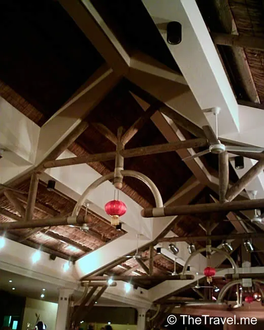 本來酒店的晚餐是不應一提再提的,但是晚的自助餐實在太有特色,故粗眉仔忍不住再講一餐。這餐可稱為「中國之夜」,因食物主要為(擬似?)中國菜,並加入少量泰日美點,如死實實的紫菜卷寺司(更奇怪的是不是點青芥辣,而是點青辣椒醬。)和冬蔭羅宋湯。中菜方面則有酸甜柴皮小棠菜、驟眼看以為係魚蛋的燒賣和特韌炒牛肉等,但最令粗眉仔驚喜的,是甜品中居然有超極濃稠的揶汁西米露同「正常」的涼粉(Chinese Mousse flavoured with Lemon Grass,這是涼粉的英文名嗎?),算是向粗眉仔等奇貨可居的中國人做最後致敬。臨走時粗眉仔才發現,酒店在佈置方面頗有心思,但見餐廳的屋樑處掛了紅燈籠,用一招「大紅燈籠高高掛」來形做中國風,更厲害的是,舞台上還有一個更大的「燈籠」—一個唱歌勁好聽的肥姐姐,雖然唱的都是七八十年代的英語流行曲,但已部分彌補了食物的不足。