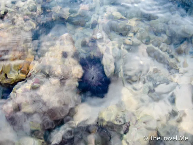 說出來大家別嚇壞,這些一個個黑色的「洞」其實都是海膽,粗略估計,每平方呎就至少有五個海膽,見到這麼多的靚海膽都不算奇怪,最奇怪的是居然在這麼近岸(離沙灘不足兩米之水底)且人口稠密(正正酒店對出)的地方見到,又係果句,好在毛里裘斯的中國人不大會煮中國菜。