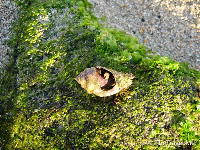 這些黏在礁石的貝殼,經粗眉仔驗証後,發現百分之一百有蟹寄居。