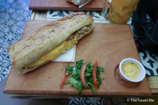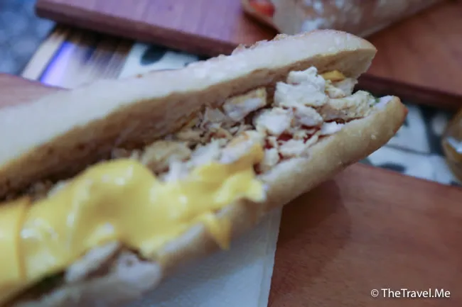 粗眉仔點了雞肉三文治,三文治即叫即整,可自己放入醬汁和蔬菜,不過粗眉仔已經覺得雞肉好夠味,冇醬汁都得。