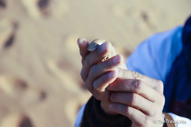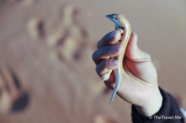 途中,亞伯拉罕突然向前一撲,捉了一隻的小蜥蝪,由於這種蜥蝪在沙漠中潛行,恍如游泳一般,故有「沙魚」(英語:Sand fish)之名。