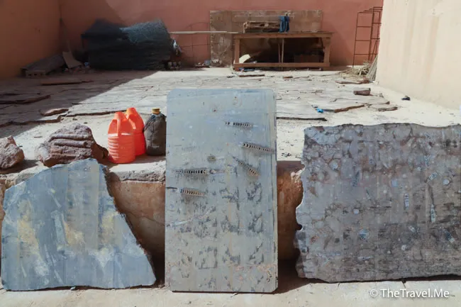 原材料係由距離這裏十幾公里外的山頭發掘,因為撒哈拉在遠古時代曾經是一片汪洋,所以有大量海洋生物的化石。