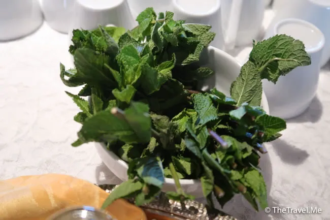 客人還可以自製摩洛哥薄荷茶,先把新鮮薄荷葉放入茶杯,再倒入熱茶沖泡,完全冇咖啡因,感覺清新。