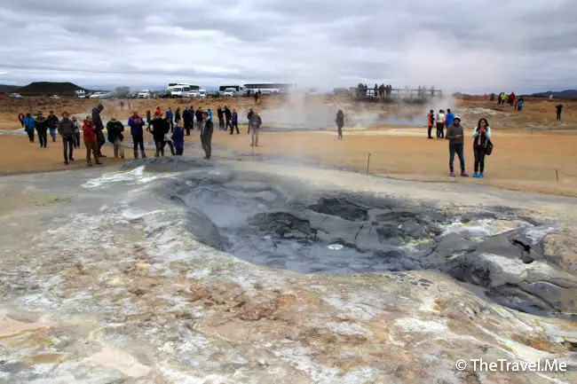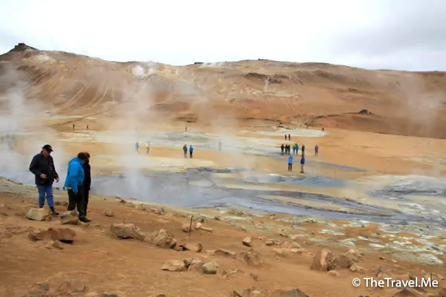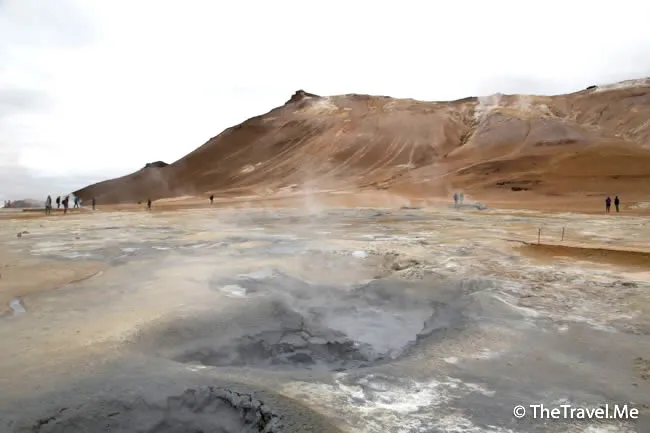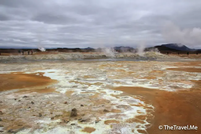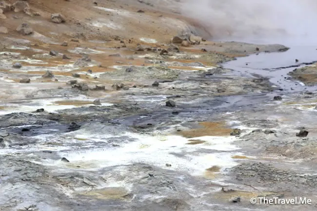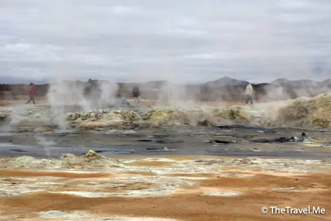果然,這裏有一個叫「Hevrir」硫磺谷,冰島另一個遊客熱點。硫磺谷的地質運動比較活躍,空氣中彌漫着刺鼻的硫磺氣味,不過因為這裏夠空曠,風力較大,不算太難受。