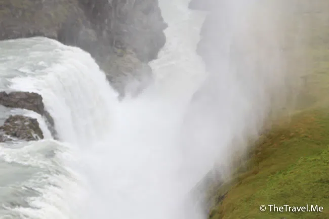 沒多久,車子便抵達一個叫做「Gullfoss」的瀑布,這個可以說是冰島最著名的瀑布,經常出現在電視節目和明信片中,更有「黃金瀑布」之譽。