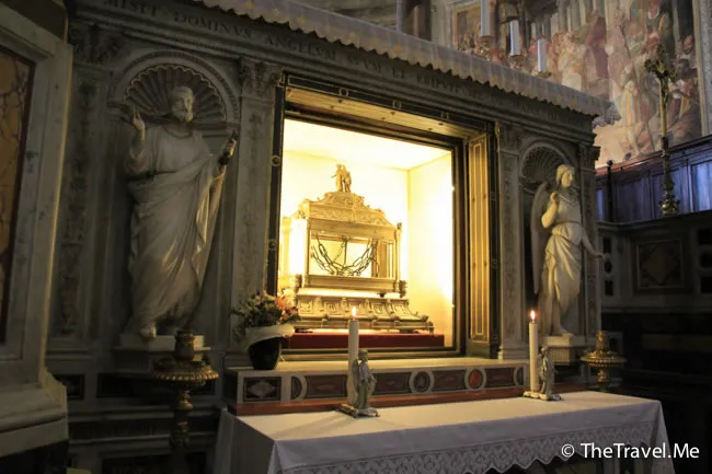 聖伯多祿在耶路撒冷被監禁時所戴的鎖鏈,就保存在聖殿的主祭台下面的聖髑盒,遊客可以自由去參觀,甚至拍照。