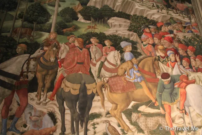 小聖堂的三面牆壁都覆蓋着《東方三賢士的伯利恆之旅》這幅連環壁畫,壁畫係由文藝復興大師戈佐利(意大利語:Benozzo Gozzoli)於公元1459至1461年繪畫,畫中人物用了當時翡冷翠的統治者麥地奇家族成員的形像。