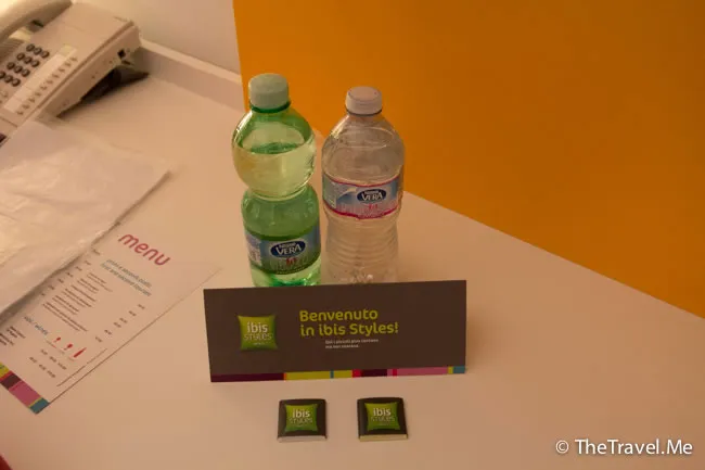 酒店奉送兩樽免費水,還有兩小塊朱古力。