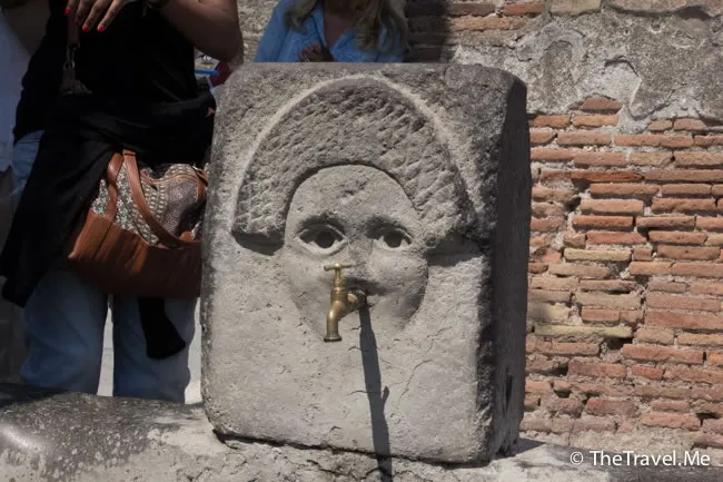 街道兩旁都可以看見昔日地下水管的㾗跡,可知當時龐貝古城的公共設施是何等完善。