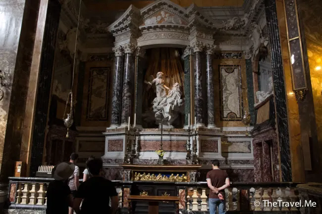 不過,整座教堂最出名的裝飾,是位在祭台左側的《聖德雷莎的狂喜》。