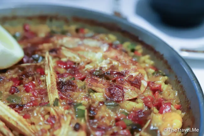 西班牙海鮮飯分量十足,因為海鮮質素極好,飯粒吸滿海鮮的香味,啖啖精彩。