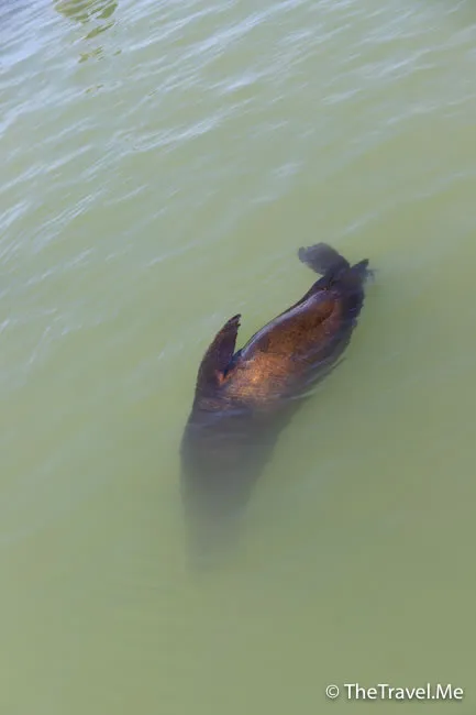 水中一大堆肥肥的海獅,岸上也有一大堆肥肥的人形海獅,粗眉仔本來好肚餓的,現在嚇到不敢吃東西了……