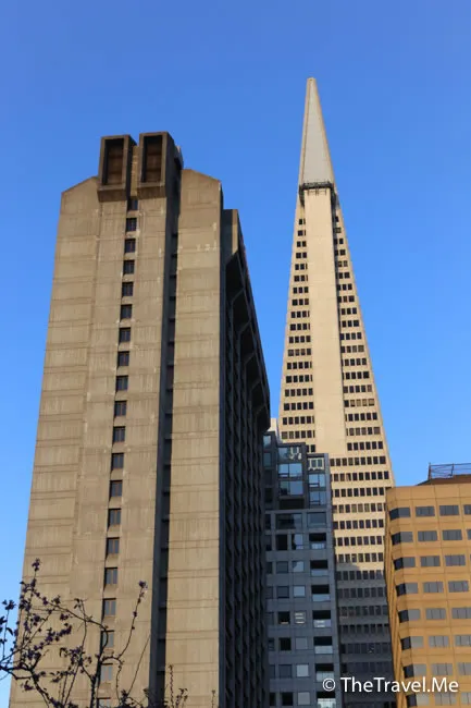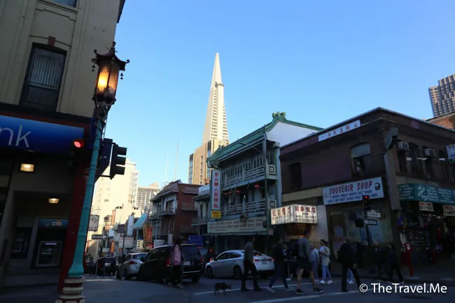 由唐人街可以清楚看見泛美金字塔(Transamerica Pyramid),這座大廈是三藩市最高的摩天大樓,據講在建造時候曾遭到反對,現在卻被讚前衛,並成三藩市的主要地標。