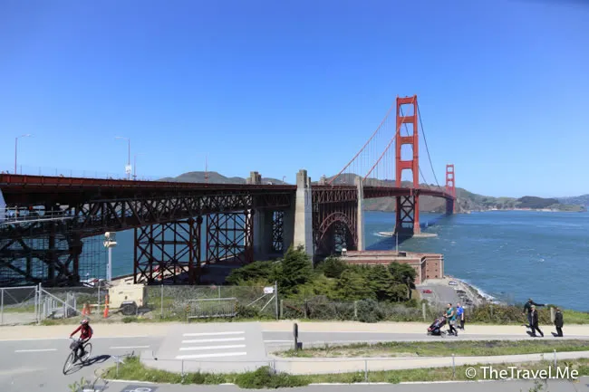 差不多要斷氣之際,粗眉仔終於踩(行)到上金門大橋的入口,由這裏望過去,三藩市市區離這裏好遠。