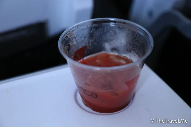 雖然航程短,但飛機上仍然供應飲品,粗眉仔點了血瑪利(Bloody Mary),好好飲。