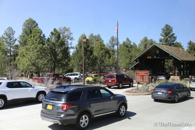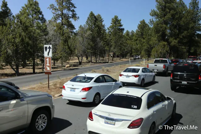 大峽谷是世界知名的景點,所以入口處有好多車在排隊,塞到爆,好在只等了十五分鐘左右。