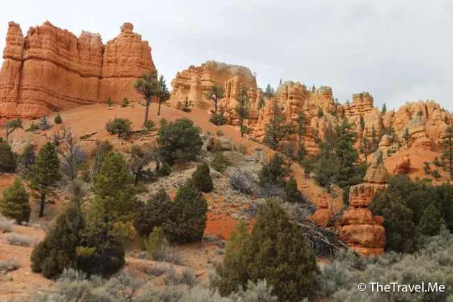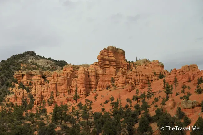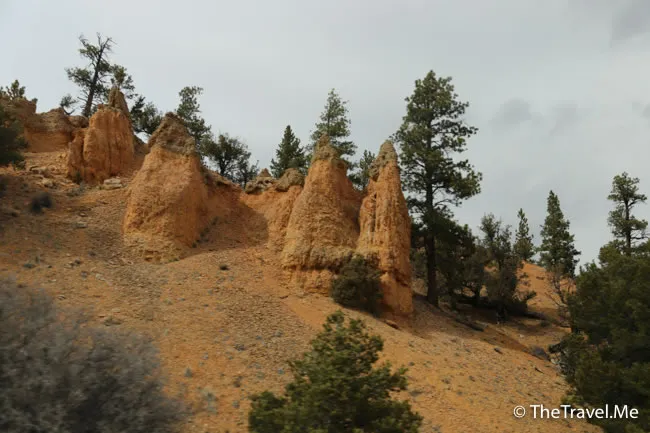 不經不覺,車子駛到一個叫紅石谷(Red Canyon)的地方,這裏的景觀和跟着要參觀的布萊斯(Bryce)差不多,但規模比較小,可以說是布萊斯的前奏。