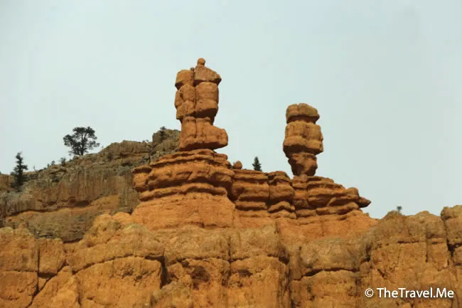 沙耶說,這種地形叫「Hoodoo」,通常在沙漠可以見到,因上層的岩石比較硬,下層的岩石比較軟,經風化後便會出現這種地形。