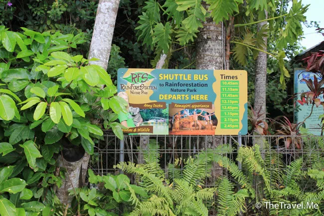 蝴蝶館外面有個巴士站,從這裏可以坐巴士進入熱帶雨林參觀其他節目。