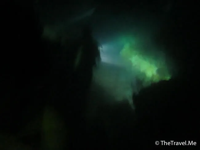 由於是夜潛,所有人都小心翼翼,沿著船邊的繩沉落海底。教練帶頭,後面的一個跟一個,只要有人帶,自己又聽聽話話,夜潛其實可以很安全。