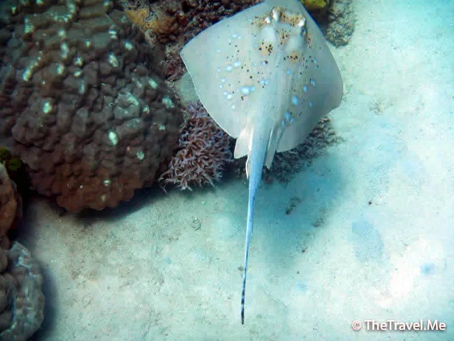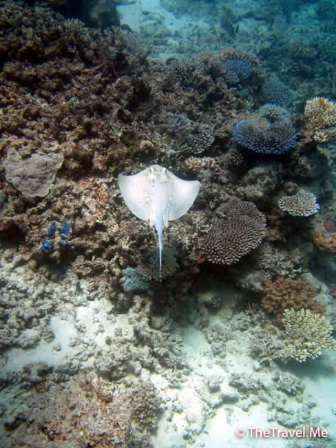 兩人以往從未在潛水時見過魔鬼魚,今次來大堡礁一心想看魔鬼魚,卻一直都看不見,早已打消了念頭,沒想到竟然在最後一潛見到了,算是還了心願。