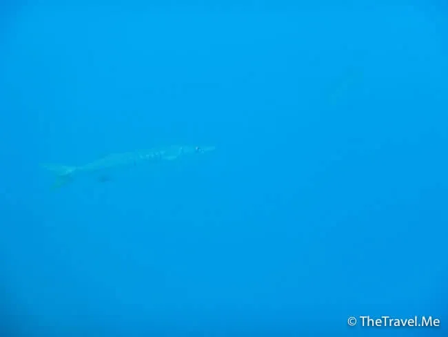 近水面有長條形的魚,但不大清楚,後來上網查閱,方知這種魚叫做喇叭魚。