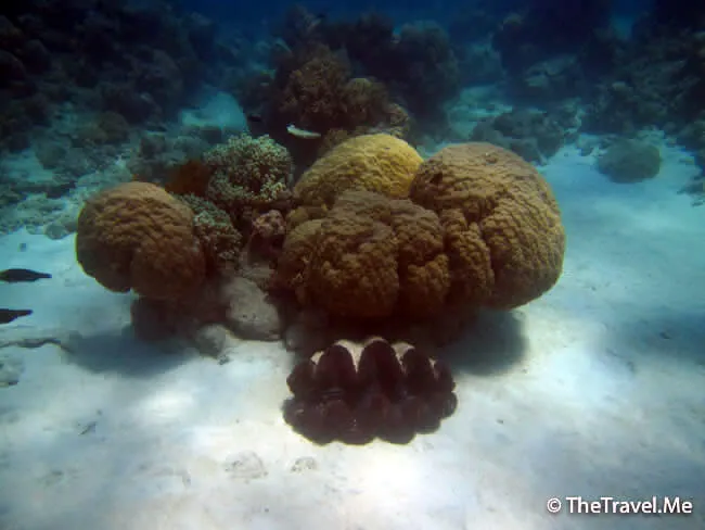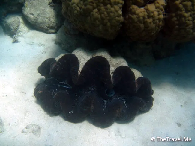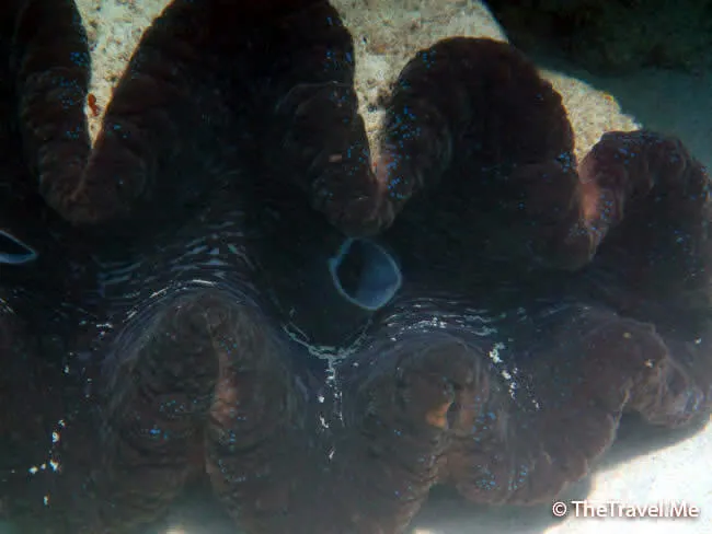 在往前游,便看見一隻超級大蚌,厚重的貝殼之下,包含着神秘的深藍色。