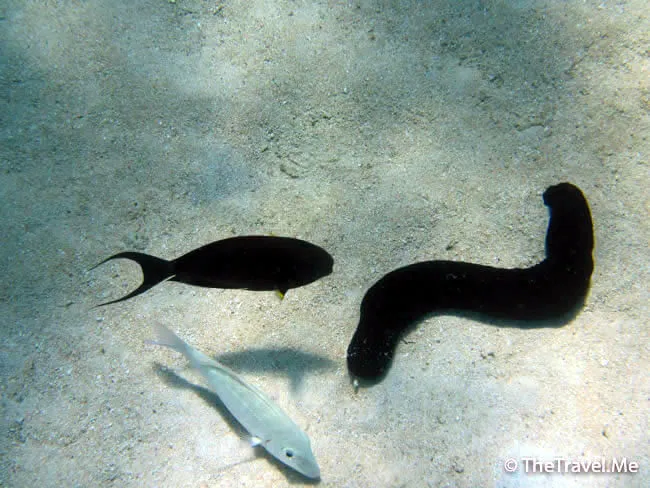 兩條傻魚加一條大海參,構成一個趣怪的畫面。
