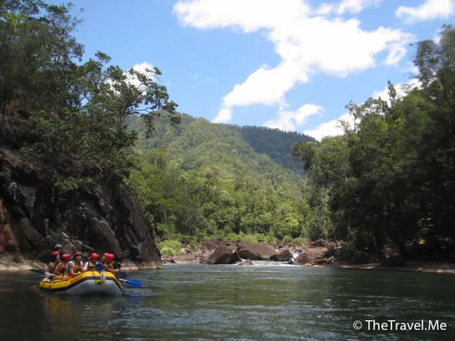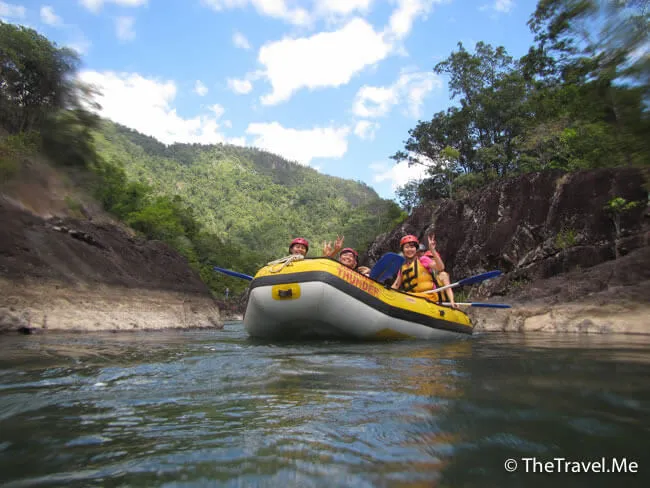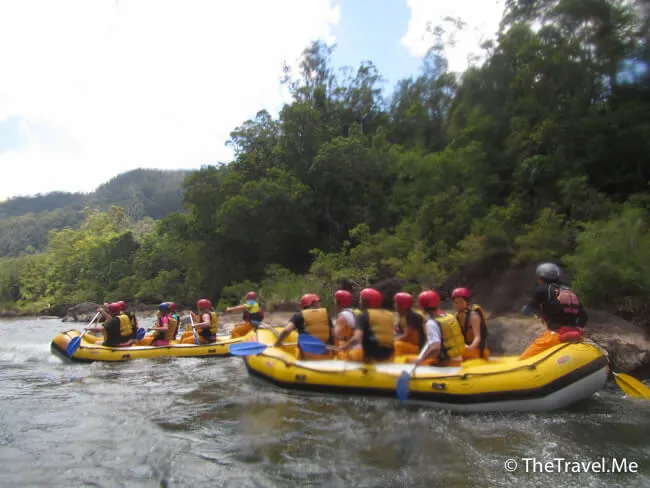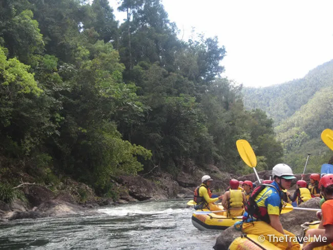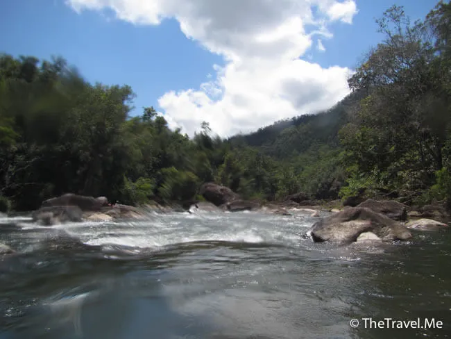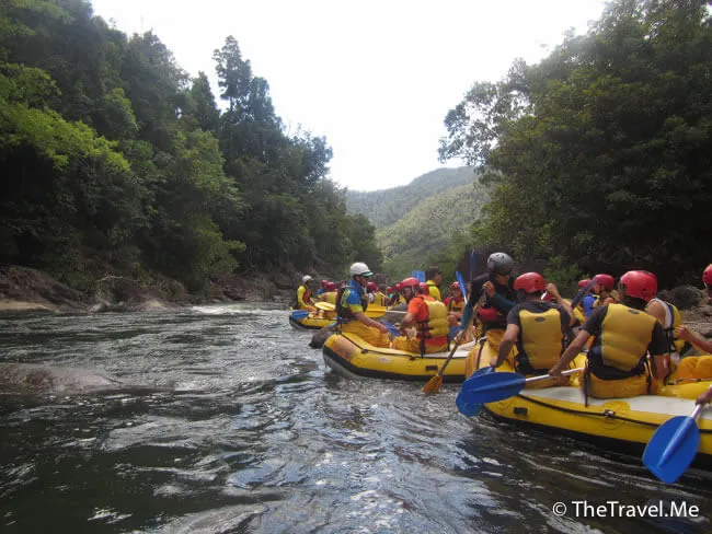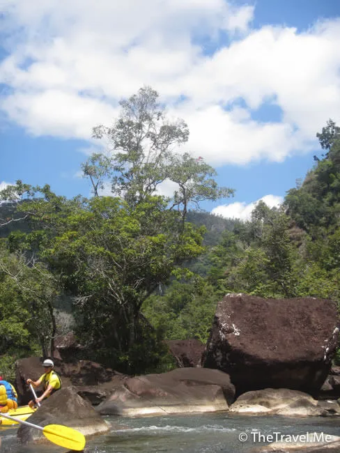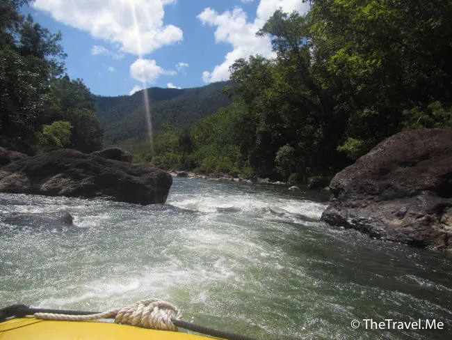 這條河的水流不算太急,橡皮艇漂流得不算快,根本毫不刺激,但也許是粗眉仔太有玩激流的經驗了。