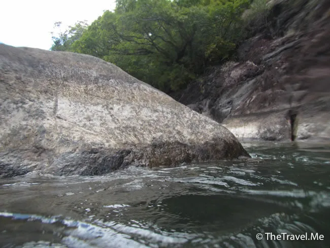 台灣情侶玩得比較放,但兩日本妹有點兒怕醜,她倆都怕被河水弄濕,一路下來都就住就住,也不敢跳落水飄浮。