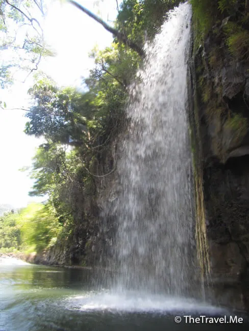 前方不遠處有道漂亮的瀑布,粗眉仔覺得自己好像來到了仙境。