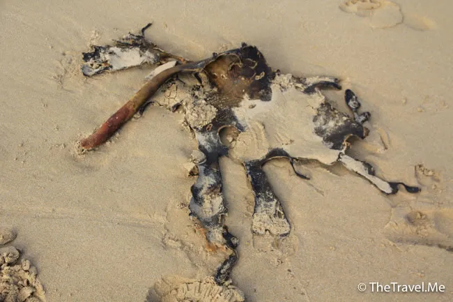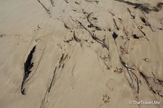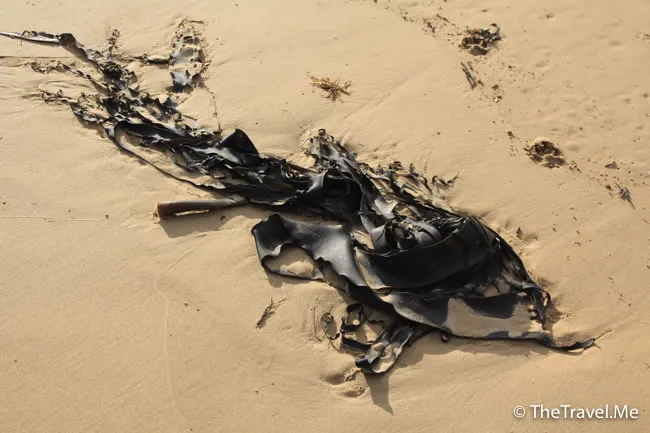 沙灘上有些黑色的海草,堅韌如橡皮一樣,和塔斯曼尼亞看見的差不多,是當地一種傳統食物的主要材料,據講非常腥臭,曾被獲選為世界上最難吃的食物之一。