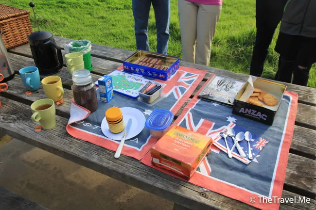 來這裏當然不止賞景這麼簡單,也會飲早茶(Morning Tea),食物和飲品由保羅預備,期間保羅用生鬼的方法講了很多有關澳洲的歷史知識,個個都捧腹大笑。