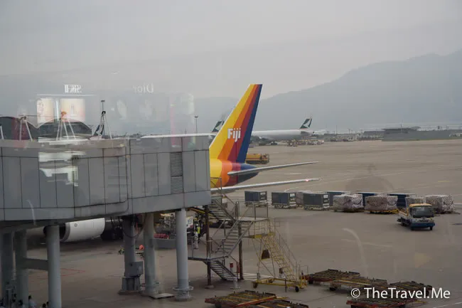 矇矓間,粗眉仔被好些放肆無禮的嘻笑聲吵醒,夜尿時才知道這些嘻笑聲是由幾個白種男女發出來的,他們塞著通道,時不時大聲講大聲笑,令成機人都冇覺好睡。這之後粗眉仔又睡了不知多久,醒來後看看錶,見已是香港時間一時多,亦即差不多是斐濟時間的六時了,便打開窗的遮蓋,果然就看見太陽,很快就要到斐濟。