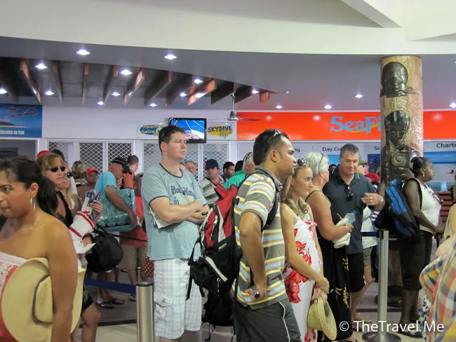 「恭喜恭喜!」粗眉仔和公主同聲道。正說著,車子已駛到「掟你錨」碼頭(Denarau Marina),但見登記櫃位人頭湧湧,粗眉仔和公主連忙將旅行社的單據拿出來,排隊登記。