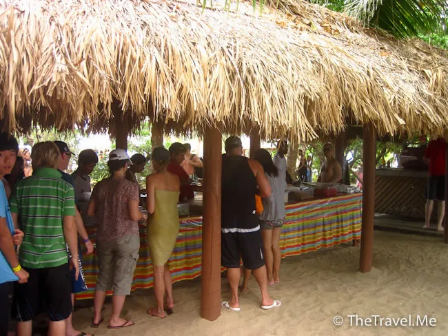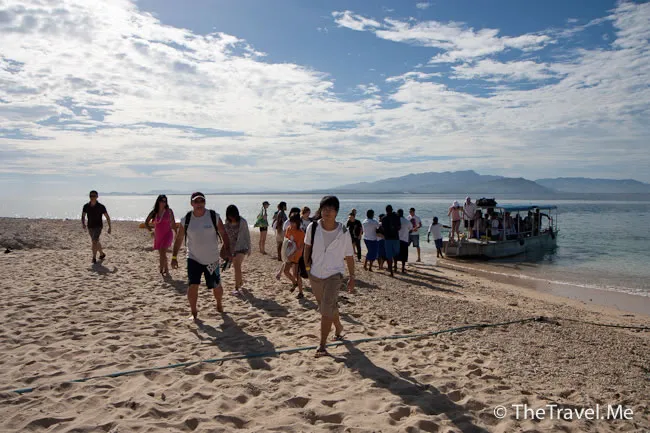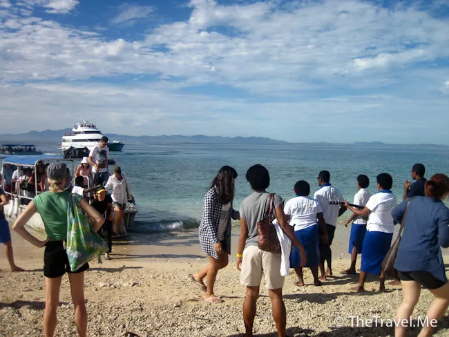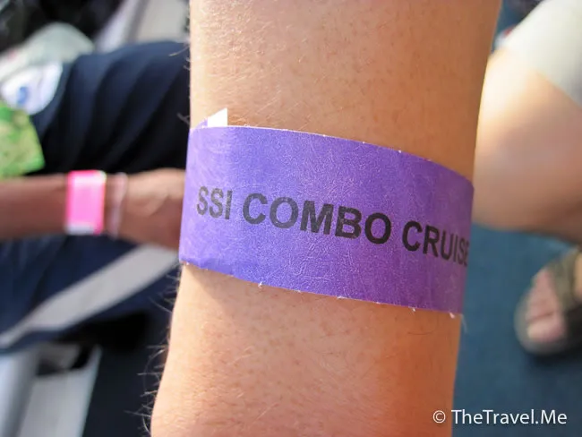 島方面派出的小艇,將所有戴橙色、黃色或紫色手帶的旅客載到島上,沙灘上有人唱歌迎賓,有濃濃的渡假感覺。