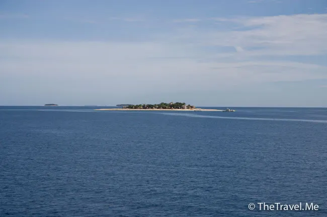 約半個小時後,船在一個小島附近停下,並發出廣播:「南海小島(Southsea Island)到了,請有橙色、黃色或紫色手帶的人落船。」