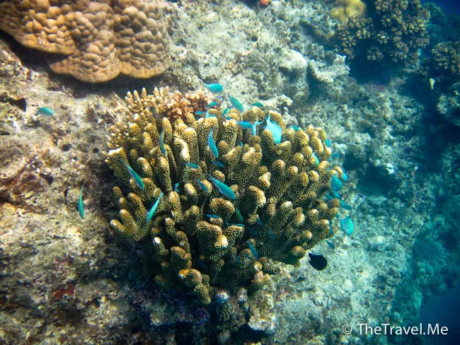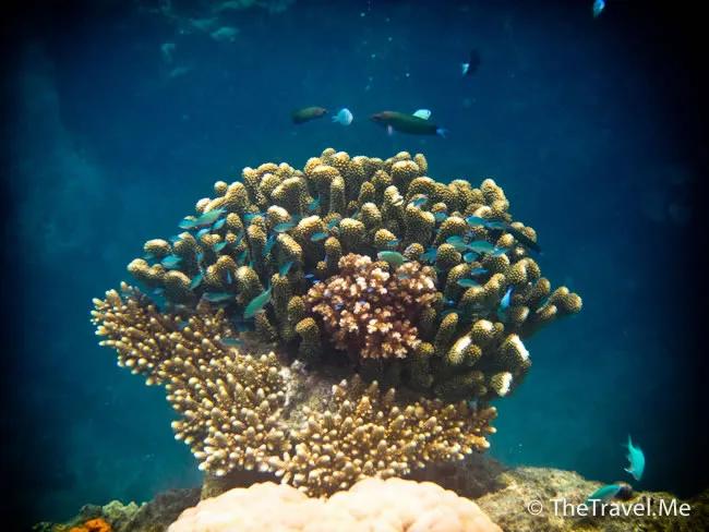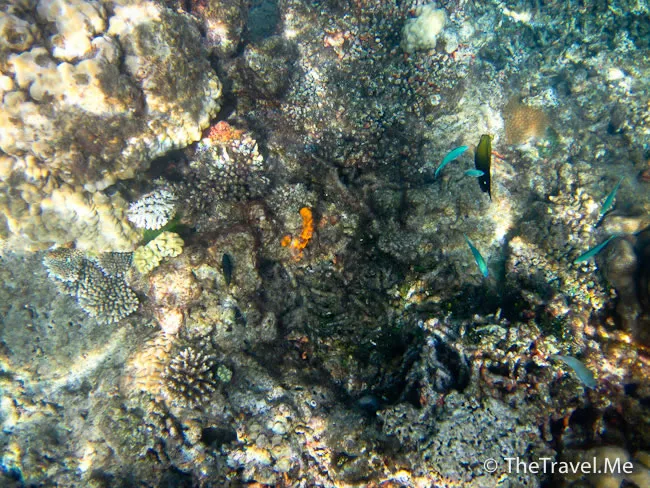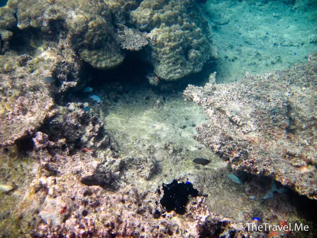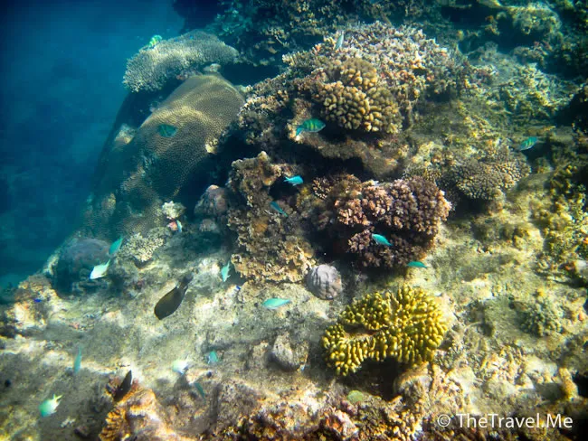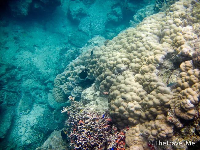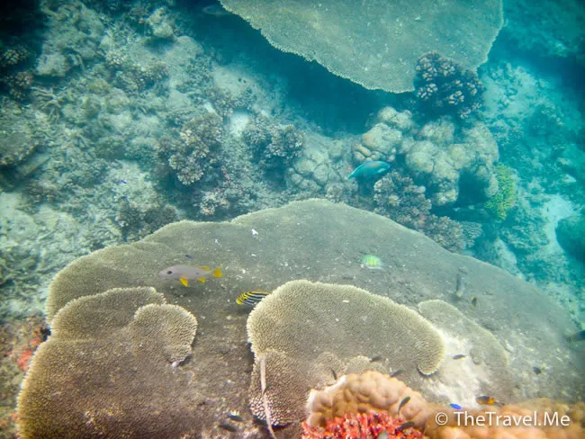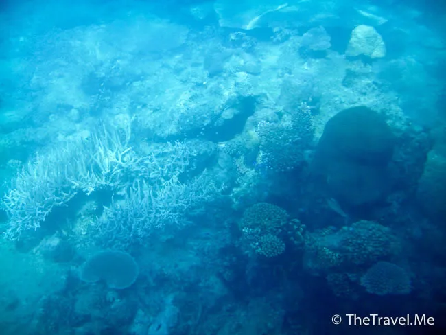 雖然島上有泳池(淡水的,怪哉!),但粗眉仔一心想看珊瑚礁,便憑登記時派的票,跑去借了一套浮潛用具(snorkeling gear)。