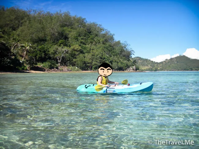 公主早就上了岸,並躺在沙灘椅上晒大陽,好不自在,見粗眉仔上岸,便嚷著要划獨木舟,粗眉仔見不遠處有個人跡罕至的小海灘,亦打算過去看看,便丟下潛水鏡,借了兩艘獨木舟出海。
