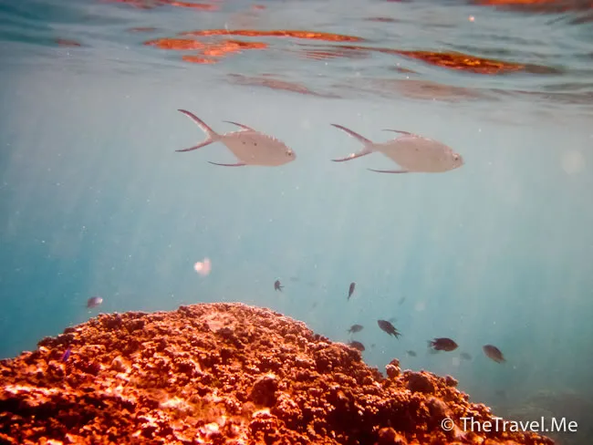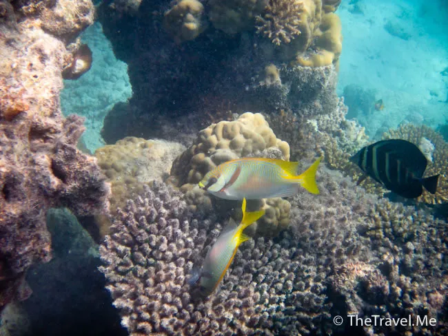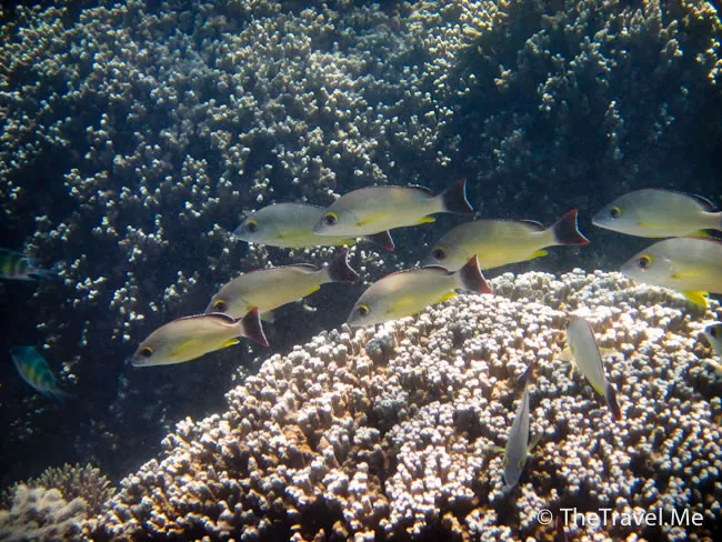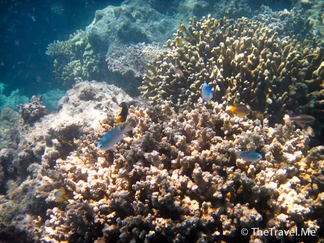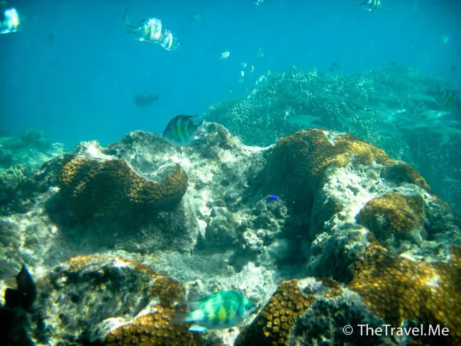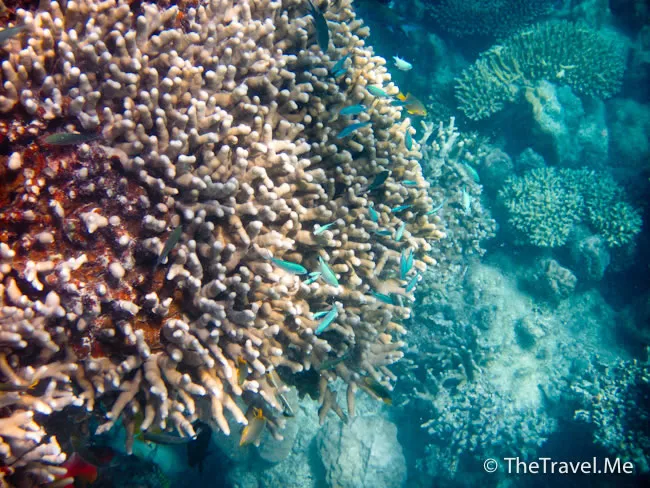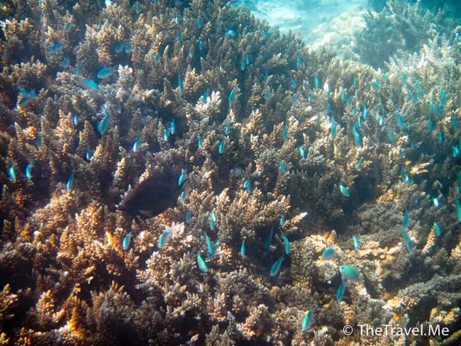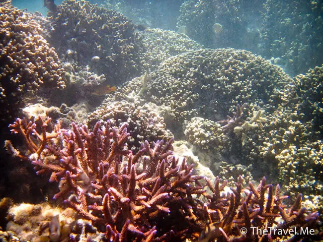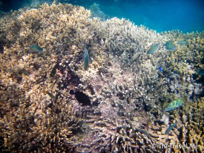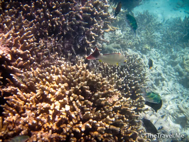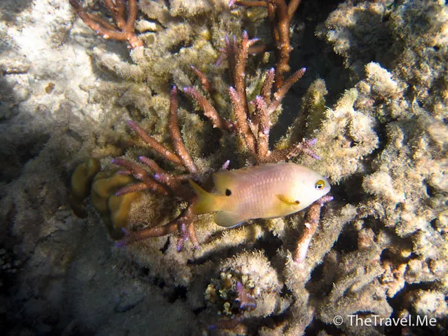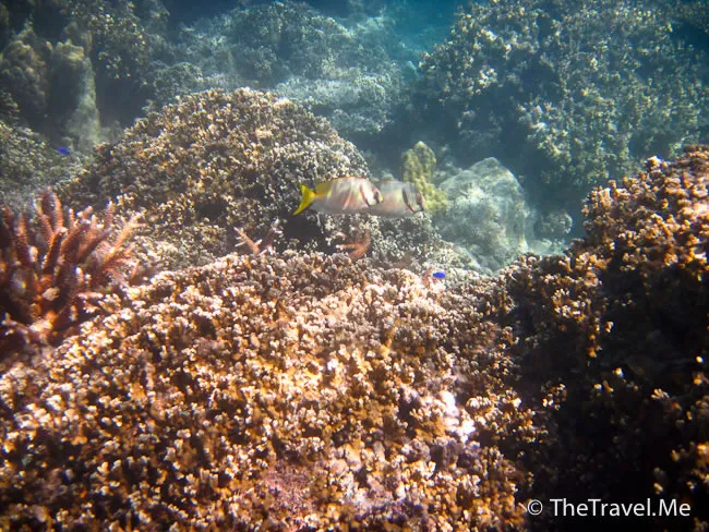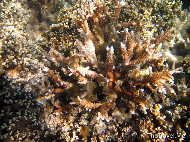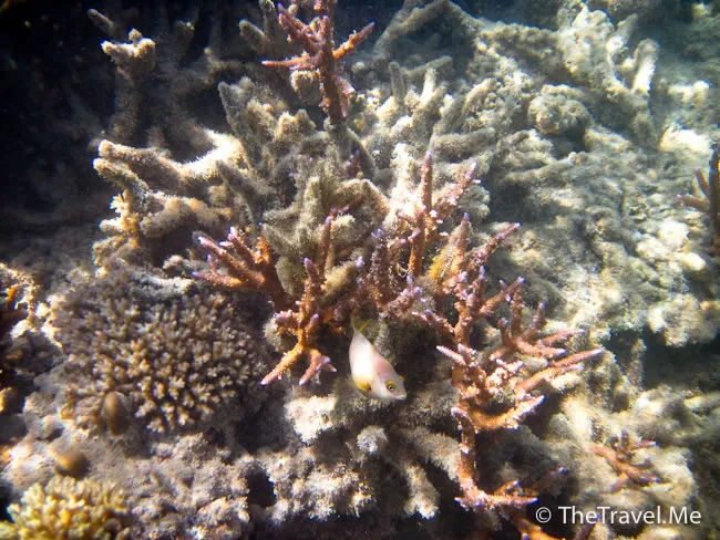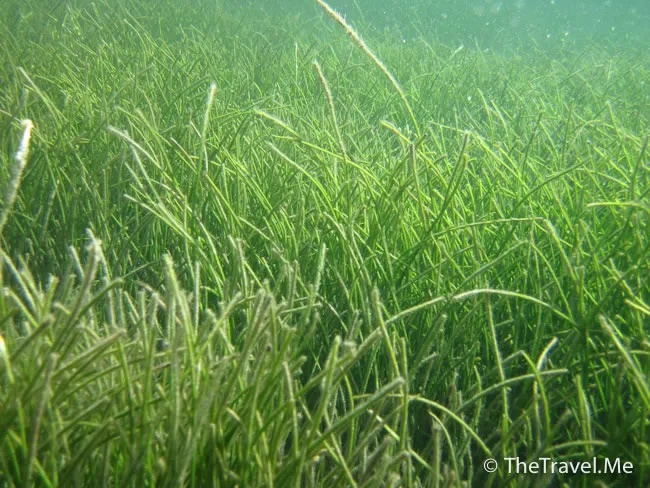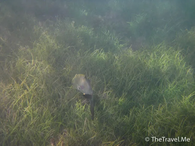 雖然海草叢中間或有魚出沒,但與珊瑚礁的盛況相比自不可同日而語,可惜游來游去,總是沒看見珊瑚礁。