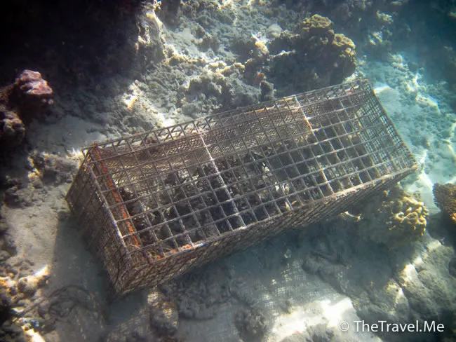 非也,鐵籠內只有巨貝乙隻,可能怕其他魚把牠吃掉,所以用鐵籠加以保護吧?粗眉仔回心細想,因為不常見,這玩意也算是頭海怪。