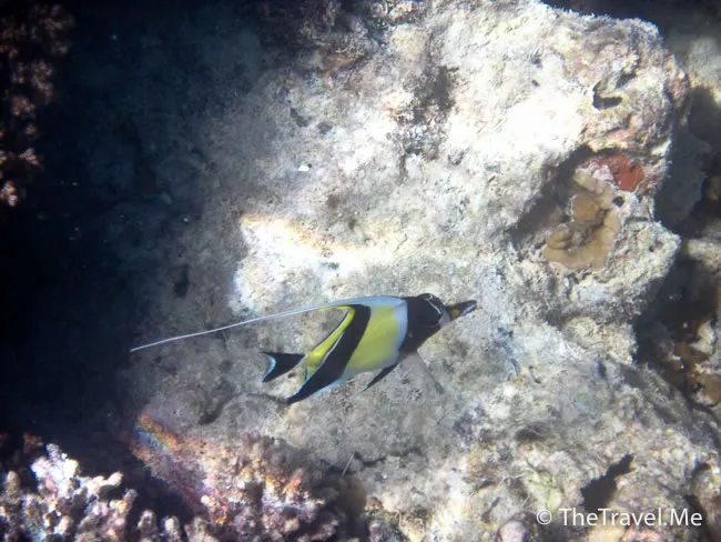 這珊瑚花園比馬佬佬島的範圍更大,珊瑚和魚的種類更多,粗眉仔玩得更開心。