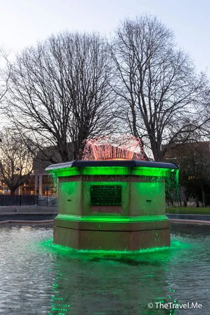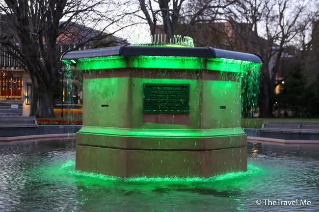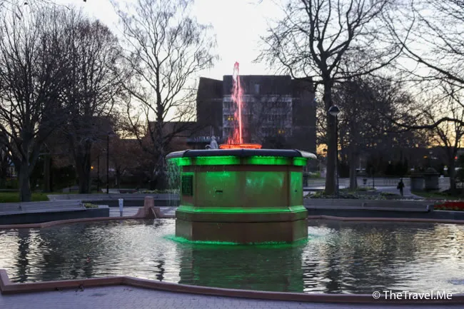 廣場中有寶卡噴泉(Bowker Fountain),晚上會打燈光,而且還可以變色,甚為美觀。