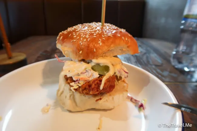 炸雞漢堡用的是雞腿肉,口感彈牙,辣辣的甚為惹味。