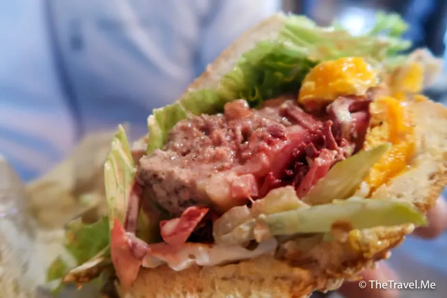 漢堡扒上還加了一隻煎蛋,層次感更豐富。