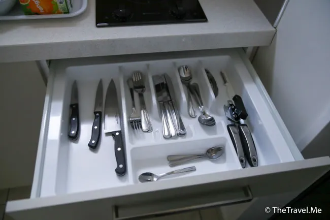 房間寬敞通爽,空間充足。一入門口就是廚房,餐具、微波爐和電爐一應俱全,就算整聖誕大餐都完全冇問題。