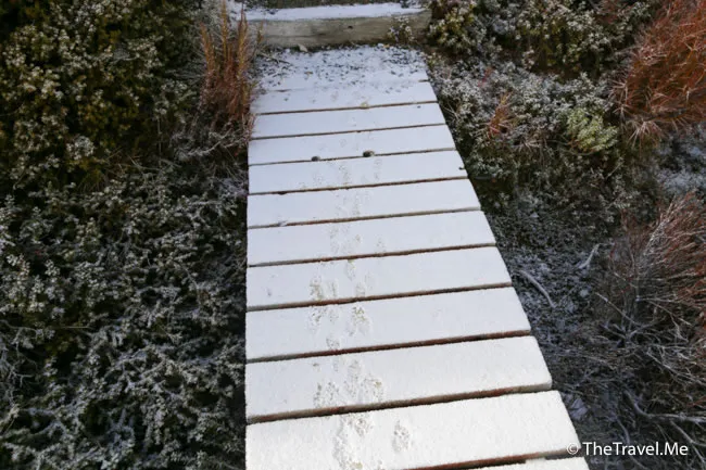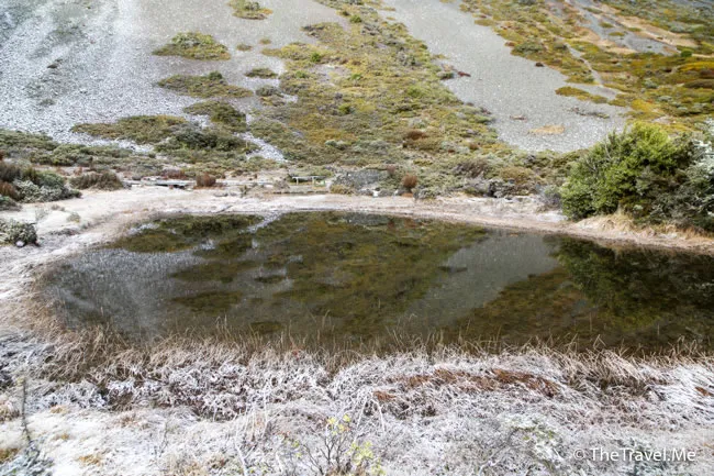 粗眉仔為了拍到好照片,便離開棧道行近冰斗湖,踏落去發覺軟綿綿,顯然是沼澤。