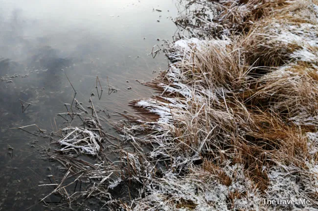 湖邊鋪滿霜雪,錦上添花。